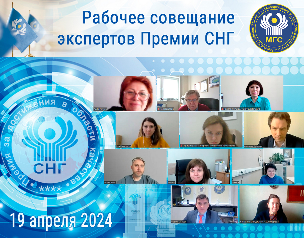 В соответствии с рекомендацией, выработанной участниками очередного рабочего совещания, состоявшегося 29.03.2024, для дальнейшей проработки критериев Премии СНГ, необходимых для перехода конкурса на соискание Премии СНГ за достижения в области качества продукции и услуг на новую модель 19 апреля 2024 года в формате видеоконференции состоялось рабочее совещание.