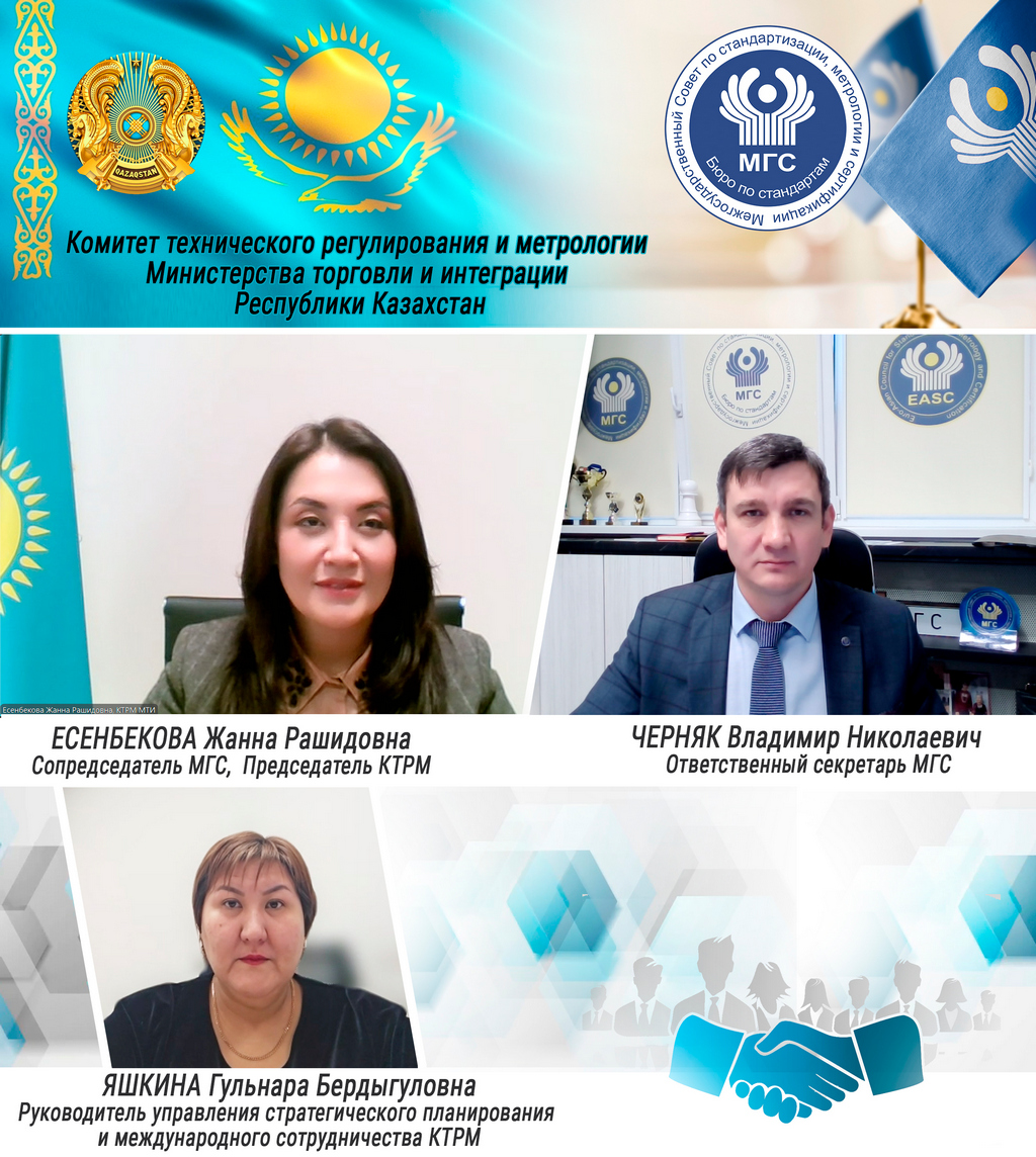 06 ноября 2024 состоялась рабочая онлайн-встреча Ответственного секретаря МГС и Сопредседателя МГС – Председателя Комитета технического регулирования и метрологии Министерства торговли и интеграции Республики Казахстан ЕСЕНБЕКОВОЙ Жанной Рашидовной.