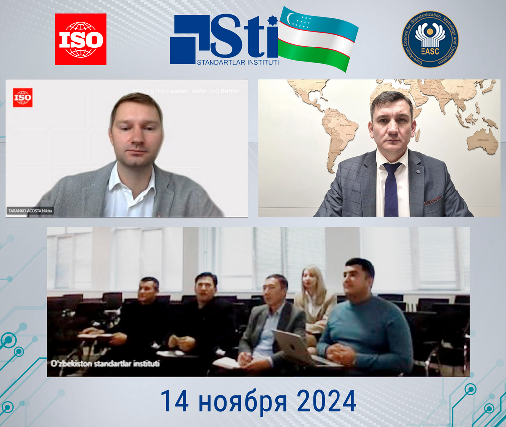 14 ноября 2024г. в соответствии с Политикой регионального вовлечения ISO (резолюция 39/2020 Совета ISO), с целью улучшения продвижения, вовлечения и поддержки членов ISO, а также содействия коммуникации, сотрудничеству и партнерству в режиме видеоконференции состоялась рабочая встреча регионального координатора Европа и Центральная Азия ISO Никиты Таранко Акоста, директора Бюро по стандартам - Ответственного секретаря МГС Владимира Черняка и сотрудников Узбекского института стандартов Узбекского агентства по техническому регулированию.