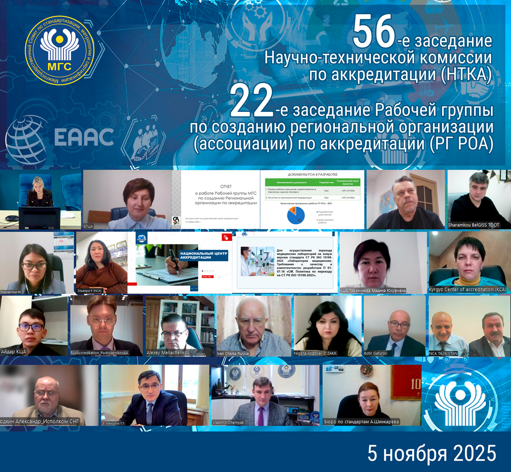 5 ноября 2025 года проведены 56-е заседание Научно-технической комиссии по аккредитации (НТКА) и 22-е заседание Рабочей группы по созданию Региональной организации (ассоциации) по аккредитации (РГ РОА)