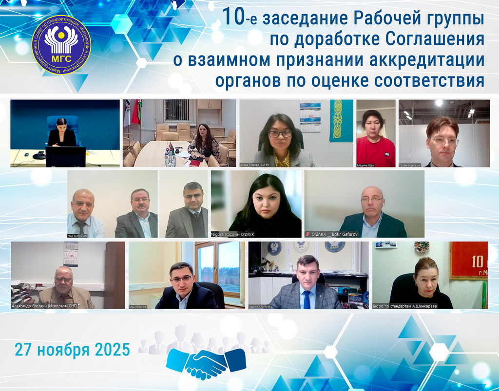 27 ноября 2025 года состоялось 10-е заседание Рабочей группы по доработке Соглашения о взаимном признании аккредитации органов по оценке соответствия (РГ ВПА) Межгосударственного совета по стандартизации, метрологии и сертификации (МГС)