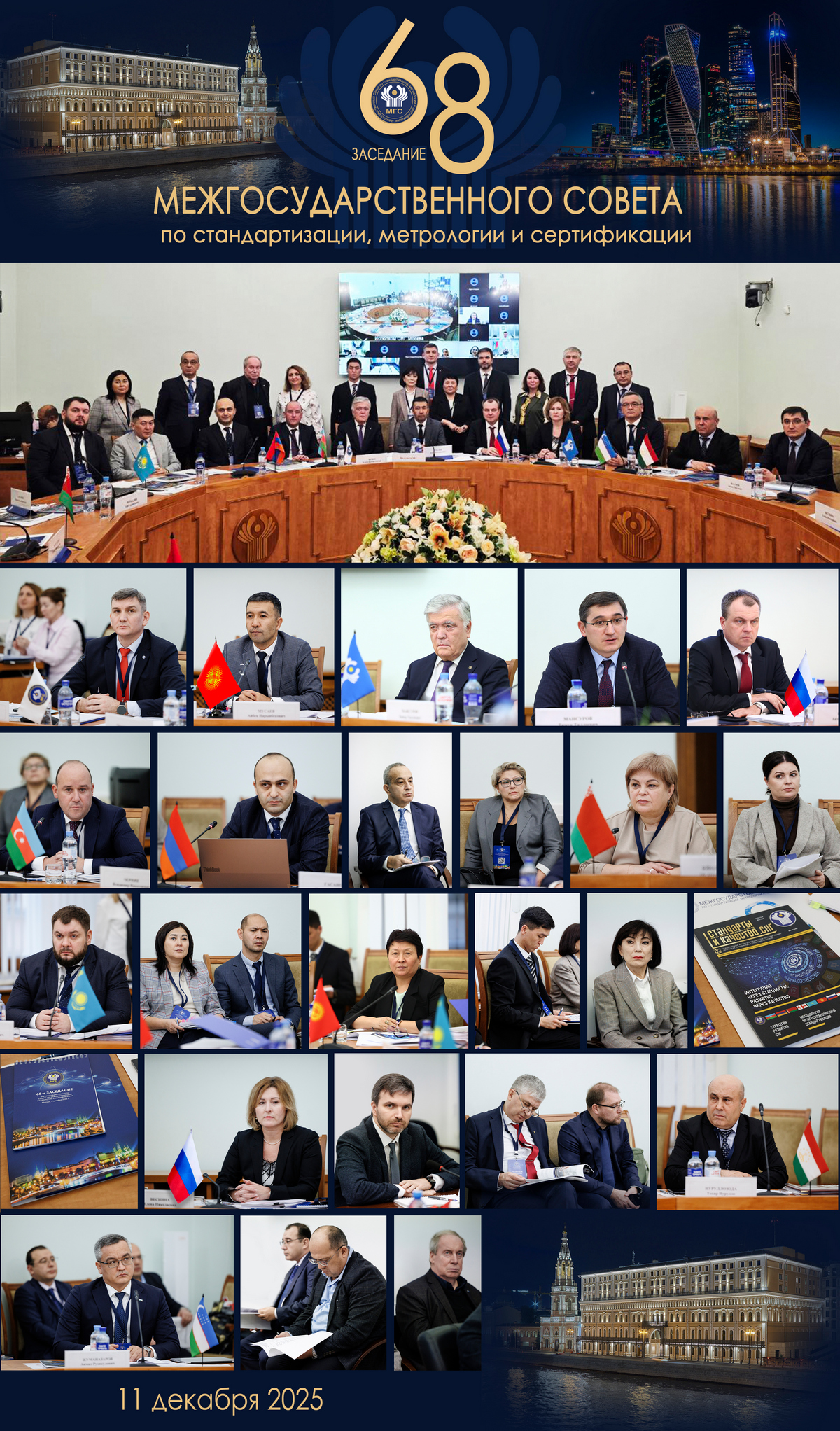 11 декабря 2025 года в Российской Федерации в г.Москва на площадке Исполнительного комитета СНГ состоялось 68-е заседание Межгосударственного совета по стандартизации, метрологии и сертификации государств-участников Соглашения о проведении согласованной политики в области стандартизации, метрологии и сертификации.