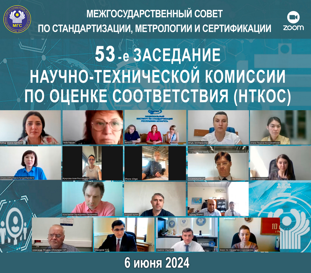 6 июня 2024 года состоялось 53-е заседание Научно-технической комиссии по оценке соответствия (НТКОС) Межгосударственного совета по стандартизации, метрологии и сертификации