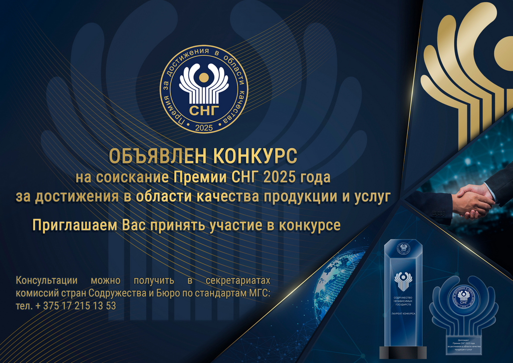 Для всех желающих участвовать в конкурсе, мы объявили юбилейный 10-ый конкурс на соискание Премии СНГ 2025 года за достижения в области качества продукции и услуг.