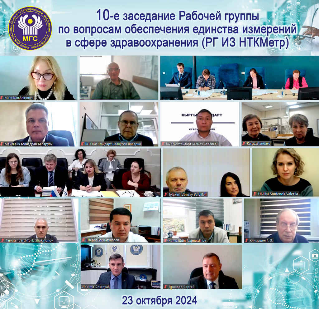 23 октября 2024 года в г. Москве состоялось 10-е заседание Рабочей группы по вопросам обеспечения единства измерений в сфере здравоохранения Научно-технической комиссии по метрологии (РГ ИЗ НТКМетр) Межгосударственного совета по стандартизации, метрологии и сертификации