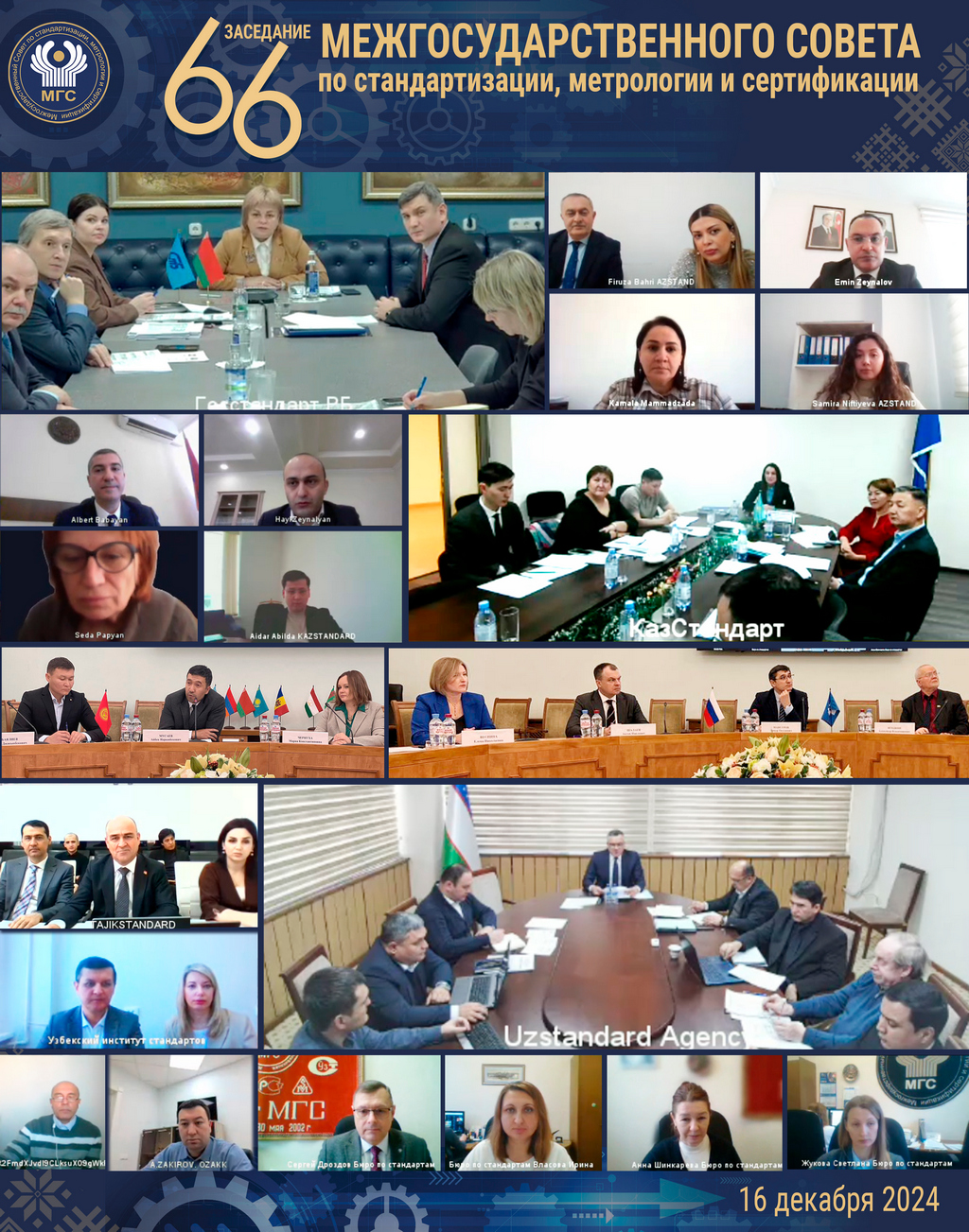 16 декабря 2024 г. в формате видеоконференции состоялось Совещание руководителей национальных органов по стандартизации, метрологии, сертификации и аккредитации государств – участников Соглашения о проведении согласованной политики в области стандартизации, метрологии и сертификации (66-е заседание МГС)
