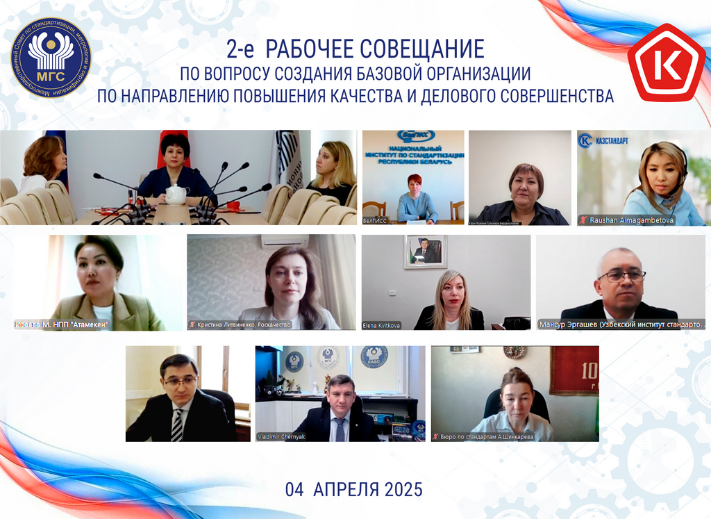 В рамках выполнения решения Межгосударственного совета по стандартизации, метрологии и сертификации, принятого на 66-м заседании 04.04.2025 в формате ВКС состоялось второе рабочее совещание по вопросу создания на базе АНО «Роскачество» Базовой организации государств – участников Содружества Независимых Государств по направлению повышения качества и делового совершенства, а также развития профессиональных компетенций специалистов в области качества.
